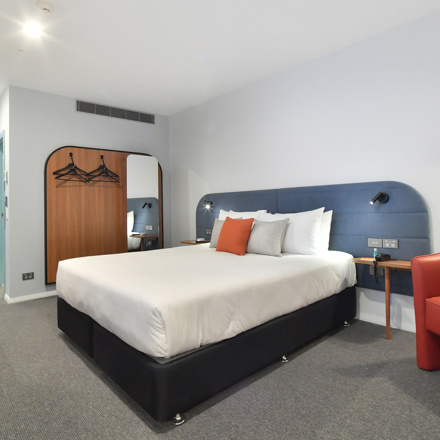 Deluxe harbour view twin rooms feature 2 double beds, en-suite bathroom and boast stunning harbour views. An Amazon Echo sits by the bedside giving you access to music, news, local information and more. You will find all the necessary amenities including TV, tea and coffee, iron and mini-fridge, to name a few, to make your stay comfortable.