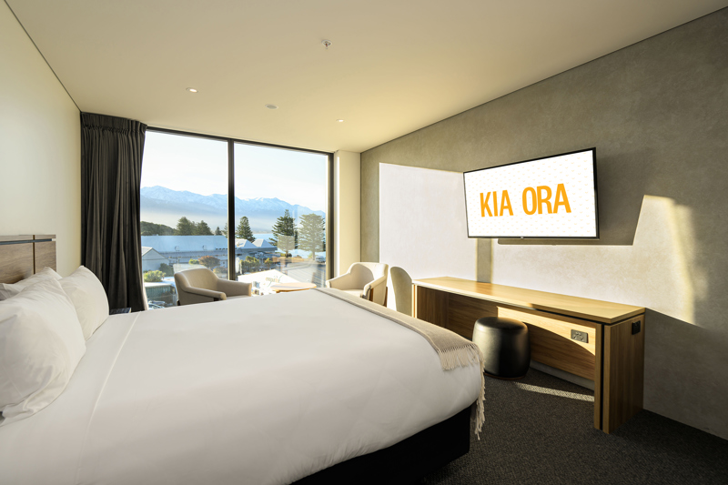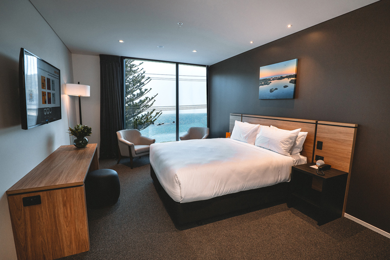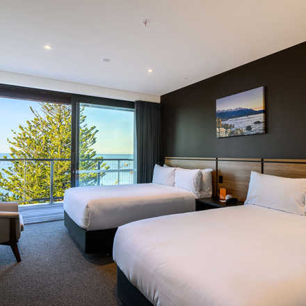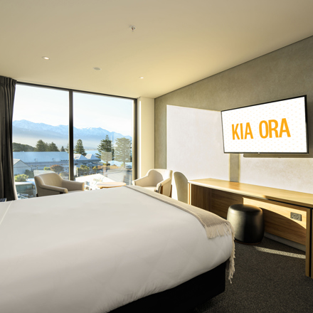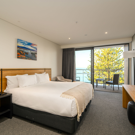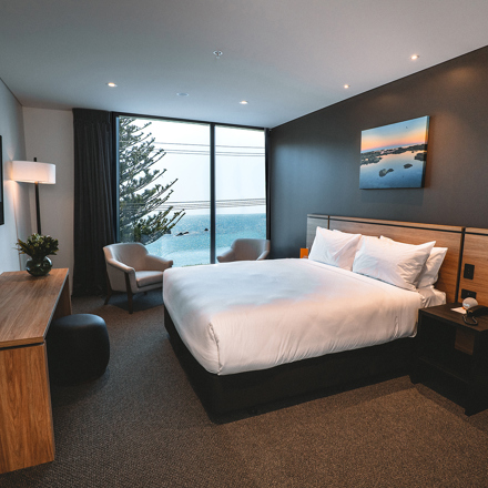 Accessible king rooms feature 1 king sized bed and en-suite bathroom, complete with lowered railings, non-slip wet floors and lowered in-room eye-hole for added security. You will find all the necessary amenities including TV, tea and coffee, iron and mini-fridge, to name a few, to make your stay comfortable.