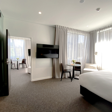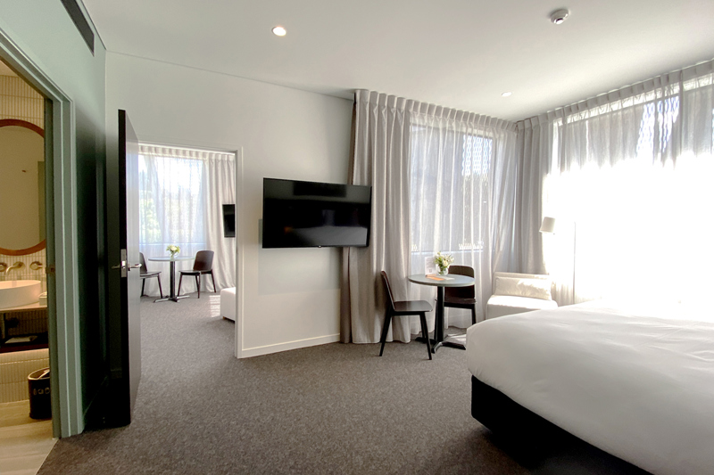 Deluxe king rooms 1 king bed, en-suite bathroom and have additional space and luxury finishings to enjoy whilst travelling. An Amazon Echo sits by the bedside giving you access to music, news, local information and more. These rooms come fully equipped with the necessary amenities including TV, tea and coffee, iron and hair dryer, to name a few, to make your stay comfortable. A lounge armchair by the window adds an extra touch of relaxation.