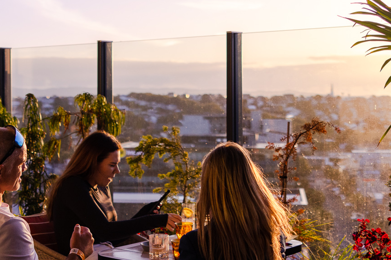 Sunset offers a seasonal menu of bespoke cocktails, a wine list of eclectic local and international vintages, and a locally focused beer selection.